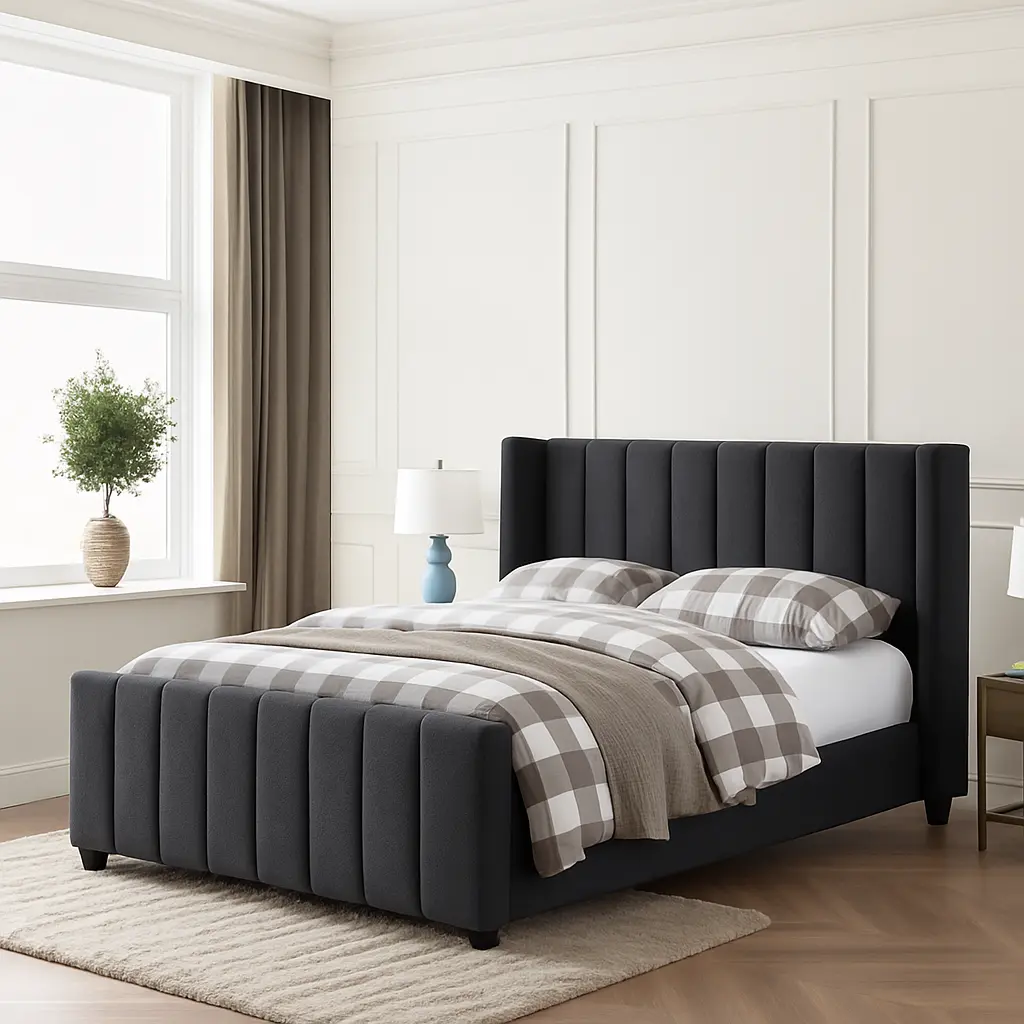Meet our Adelina fully upholstered bed – it’s all about blending classic charm with a bold, eye-catching vibe. This bed is a much-needed warm snuggle for your room, fitting into any décor style you love. The timeless-meets-modern effect is what we aimed for, with thick vertical stitches that add a touch of calm to its sleek design. This bed is a statement piece that will add luxury to your room tenfold.