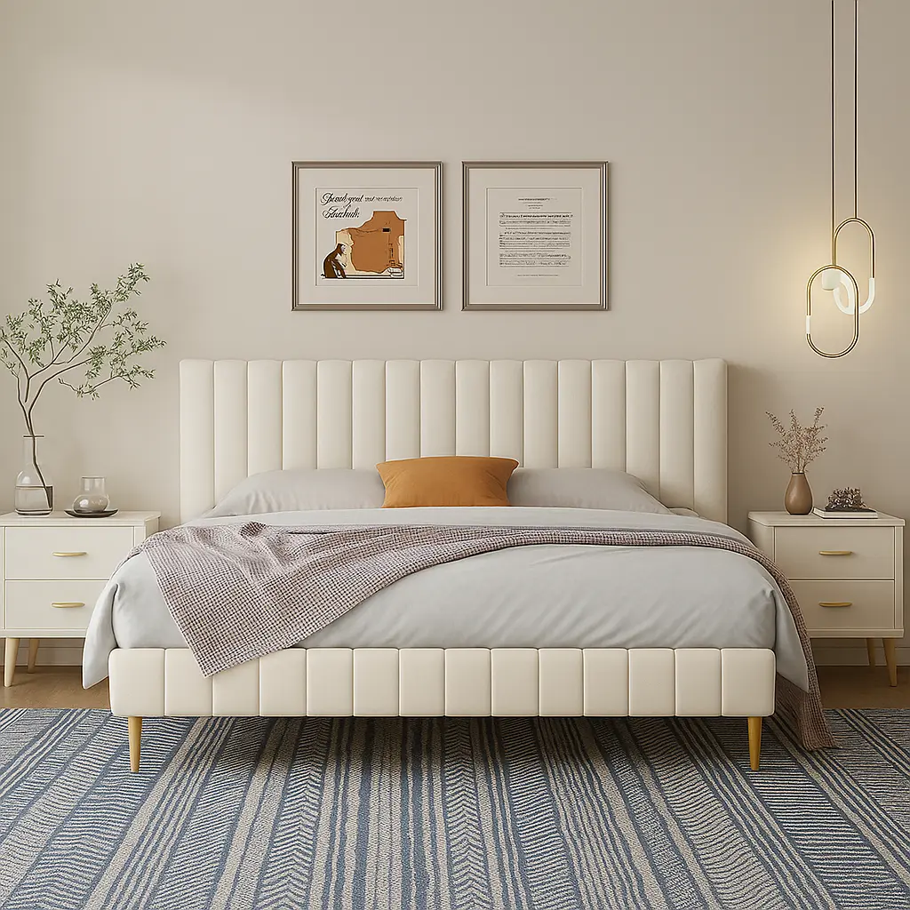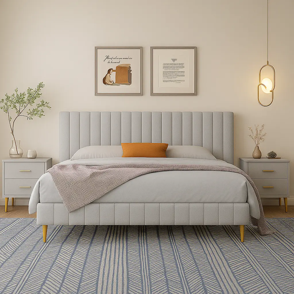 Ready to drift off in style with our modern Dominique panel bed? Sink into a cloud of luxury, because it isn’t only about beauty and comfort. Indulge in the plush padding that helps you unwind, lets you read peacefully after a long day, and offers a rejuvenating night’s rest. Each Dominique Panel bed blends elegance and appeal, offering you the harmony in life you rightfully deserve.