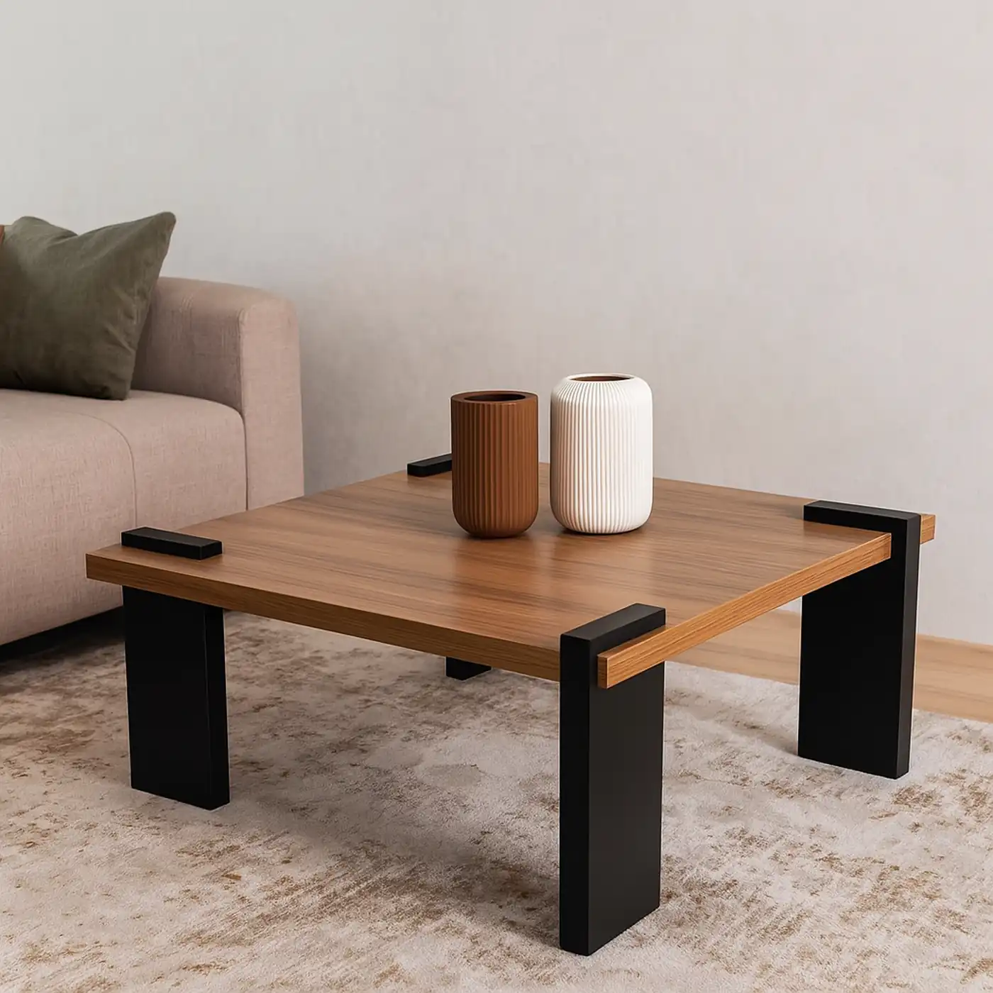 The Noir Timber Coffee Table features a bold, low-profile square design that unites solid wood warmth with industrial edge. Its smooth timber surface is framed by matte black metal legs that wrap cleanly over the corners, creating a striking interplay of material and geometry. Designed for modern interiors that embrace contrast and clarity, Noir Timber anchors any living space with quiet confidence. Style it with earthy textures or monochrome accents for a curated, contemporary feel.