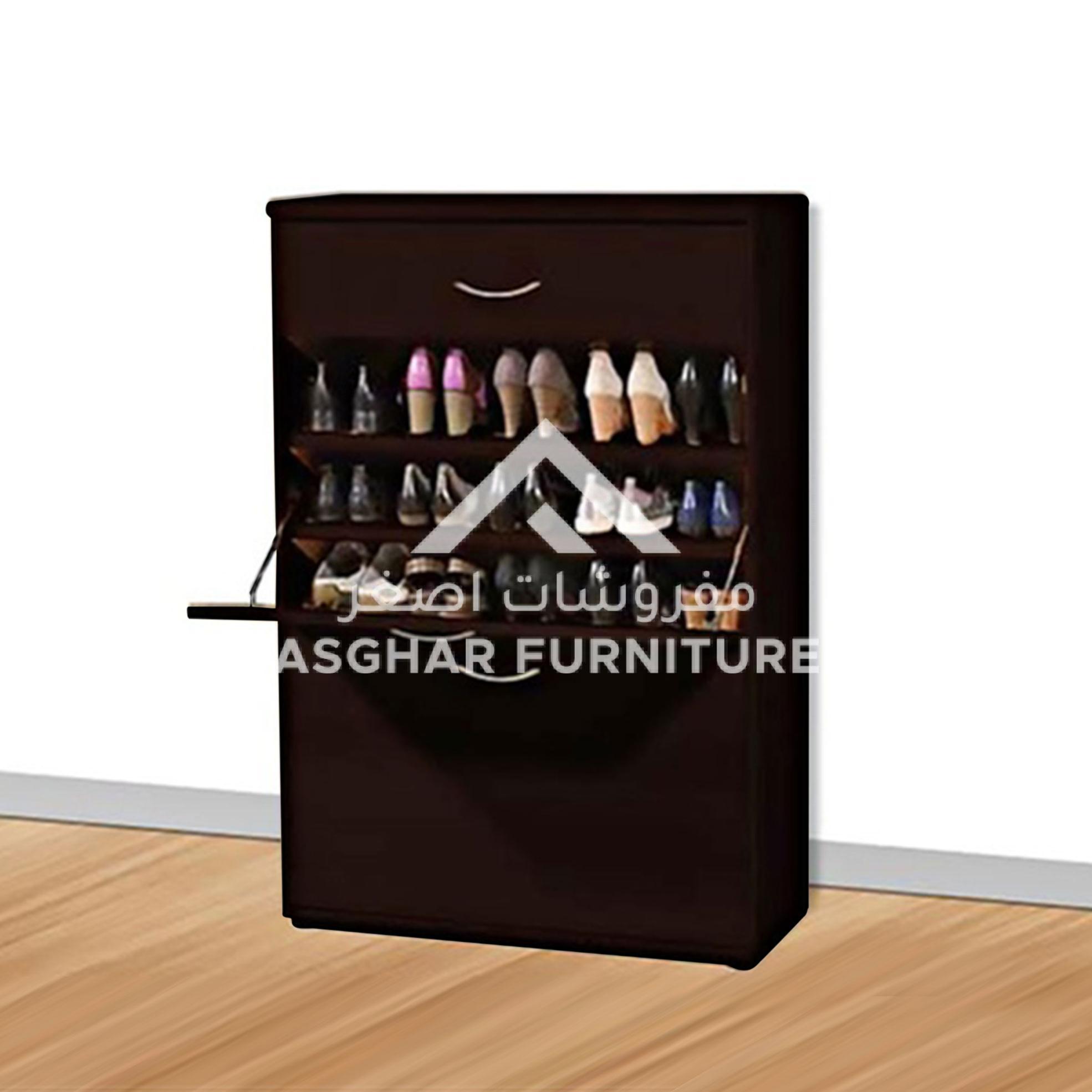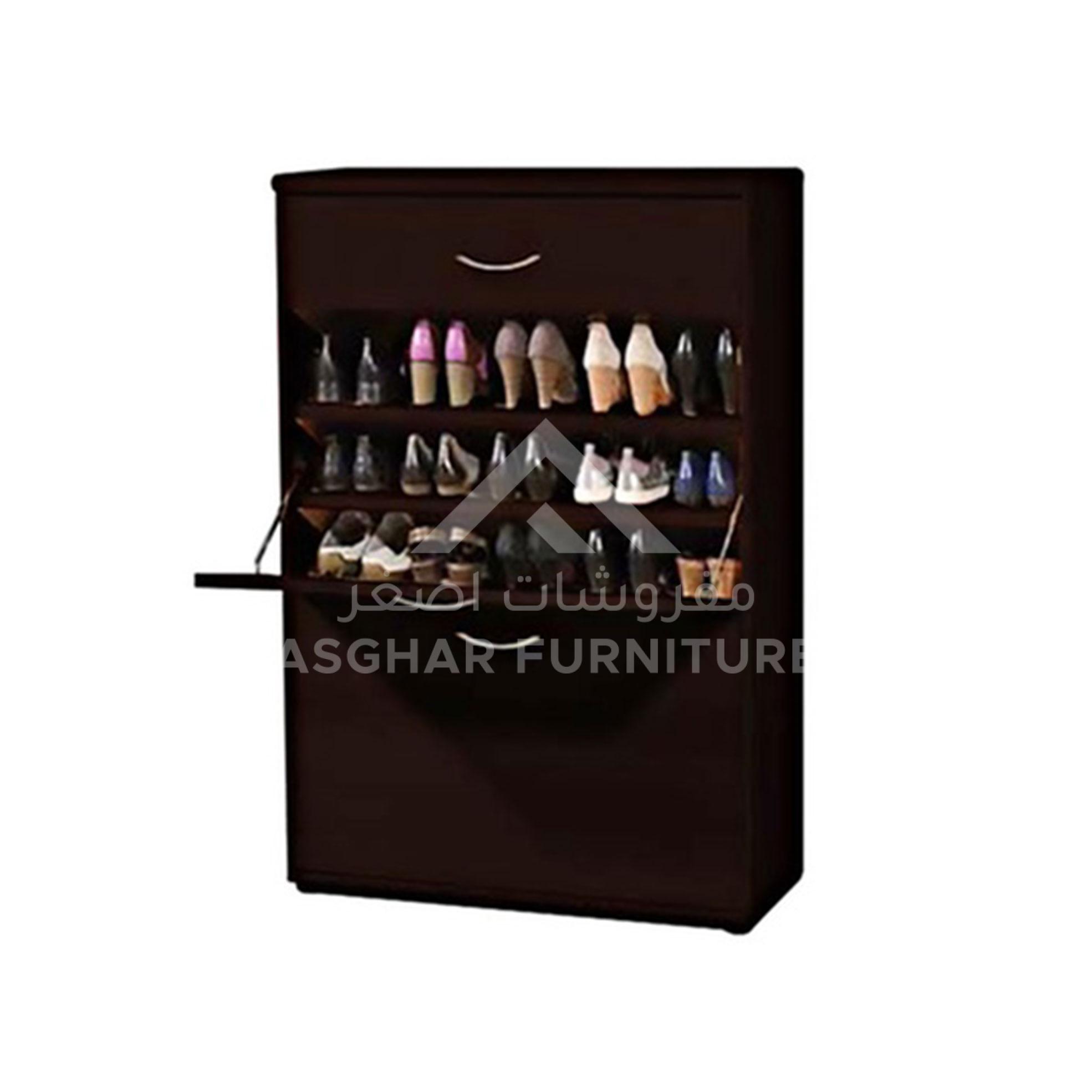 At Asghar Furniture, Two-Door Shoe Cabinet Featuring a modern design and ample storage space, Two door conceal multiple shelves with storage space for up to 24 pairs of shoes.